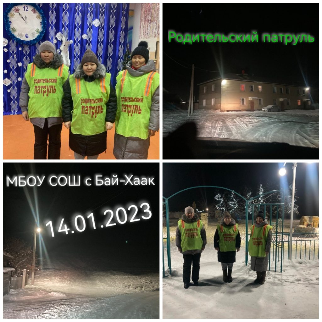 14 января на родительский патруль выходили родители 6 «В» класса МБОУ СОШ с. Бай-Хаак Куулар Ч. А., Ооржак А. Ю., классный руководитель — Кужугет А. Р.