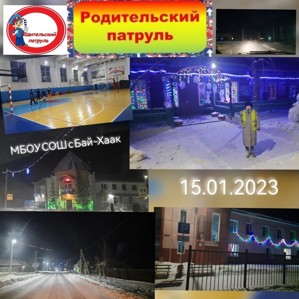15.01.2023 г. на родительский патруль выходили родители 6 «г» класса МБОУ СОШ с. Бай-Хаак. На улицах Горького, Оюна Данчая, Степная, Дружбы детей не встретили. В спорткомплексе играли 11 классники.
