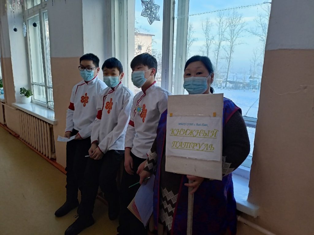 16 января в школе прошел рейд по проверке сохранности учебников «Книжный патруль». Проверку проводили волонтёры школы — учащиеся 8г класса Беляев Богдан, Монгуш Артас и Сурунчап Ценд-Аюш под руководством педагога-библиотекаря Анжелики Сергеевны Ооржак. Проверялось наличие учебников на уроке согласно расписанию, обложки, а также внешний вид учебников. Рейд показал, что у многих учащихся есть закладки в учебниках, обложки, некоторым учебникам требуется мелкий ремонт (подклеить, стереть ластиком пометки и пр.).