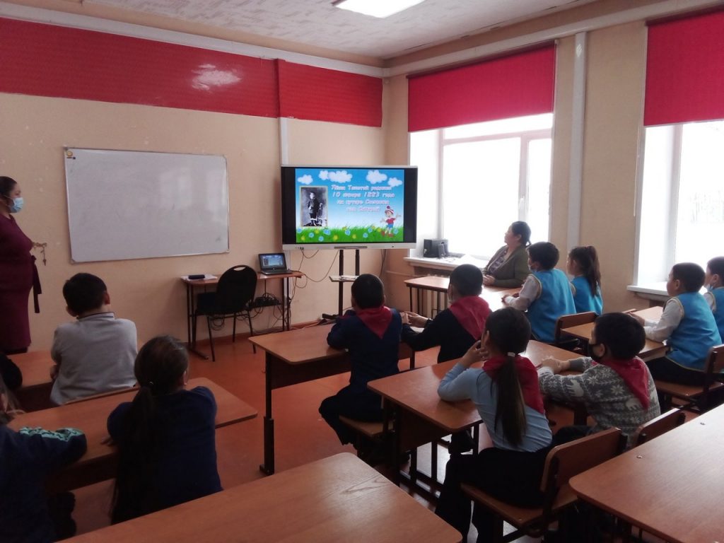 В начале старшая вожатая школы Оюмаа Кара-ооловна в увлекательной форме рассказала ребятам о выдающемся писателе Алексее Николаевиче Толстом. Дети узнали интересные факты из жизни писателя, о его литературном творчестве. Беседа сопровождалась демонстрацией слайдов, видеороликов и музыкальными фрагментами.