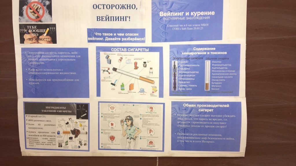Расширение представления о вейпинге, о вреде употребления электронных сигарет обучающимися — одна из главных задач воспитания здоровьесберегающей технологии в школе. Сегодня в классах прошли классные часы, направленные на профилактическую работу.