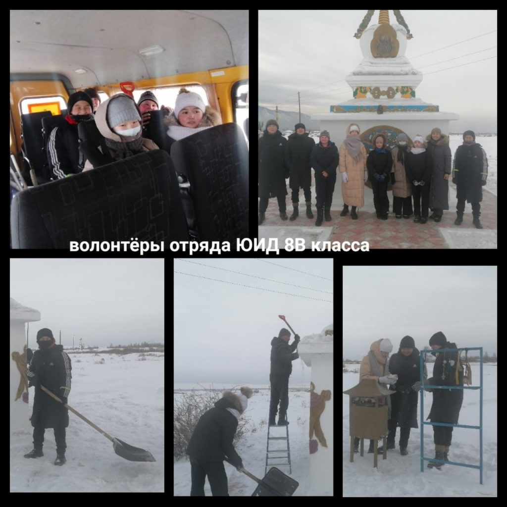 нет рубрики Волонтеры отряда ЮИД 8 «в» класса 26.01.2023 / Волонтёрами 8 в класса МБОУ СОШ с. Бай-Хаак сегодня была организована уборка снега вокруг священного места субурган. Ребята расчистили весь снег вокруг субургана и расчистили дорогу вокруг него для удобства населению.