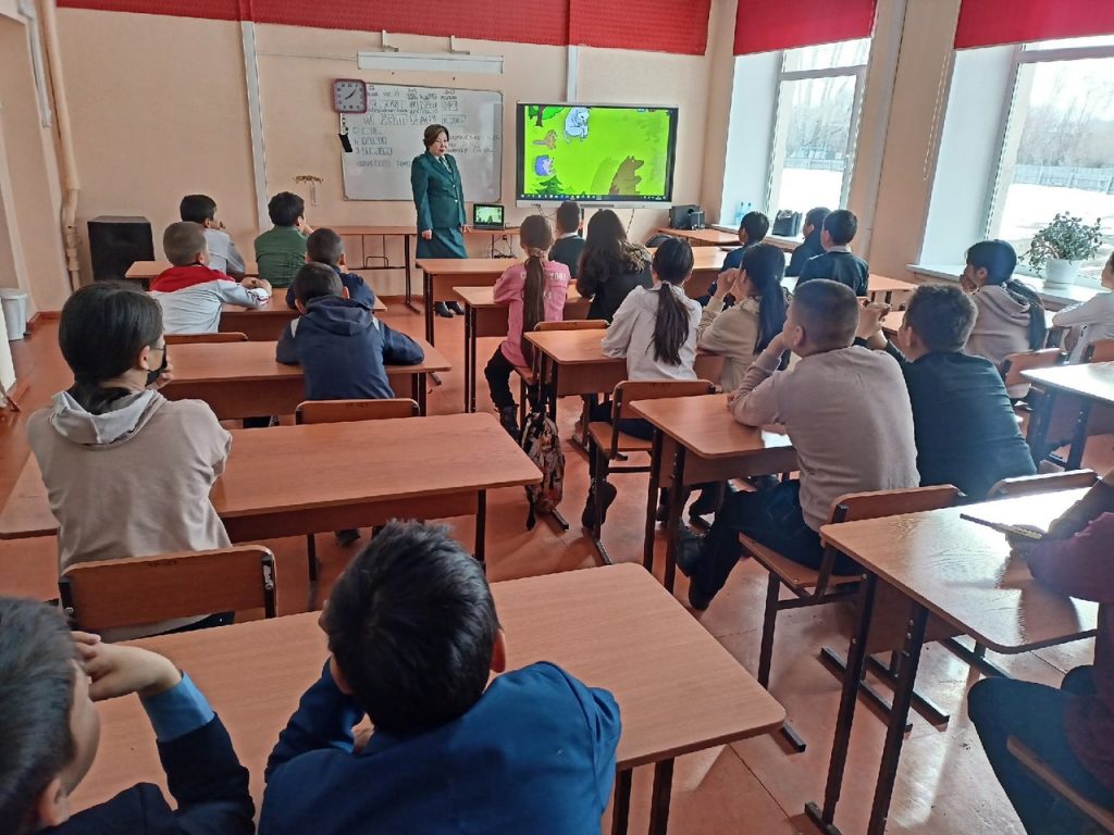 Государственный налоговый инспектор Управления Федеральной налоговой службы России по Республике Тыва — Чодураа Кара-ооловна Монгуш провела для учащихся 5-ых и 6-ых классов урок налоговой грамотности.