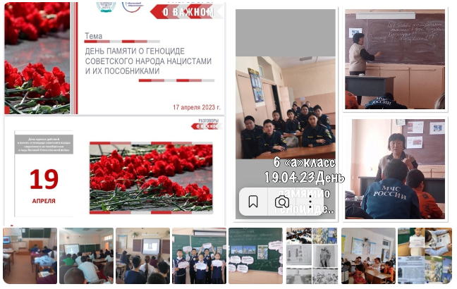 19 апреля в школе провели Единый урок «Без срока давности», который был приурочен ко Всероссийскому Дню единых действий в память о геноциде советского народа нацистами и их пособниками в годы Великой Отечественной войны. Целью урока является сохранение исторической правды о преступлениях нацистов и их пособников в отношении мирных советских граждан на оккупированной территории. Классные руководители через призму исторической памяти показали, что действия Красной Армии и единение советского народа в достижении Победы спасли Советской союз и его граждан от уничтожения.