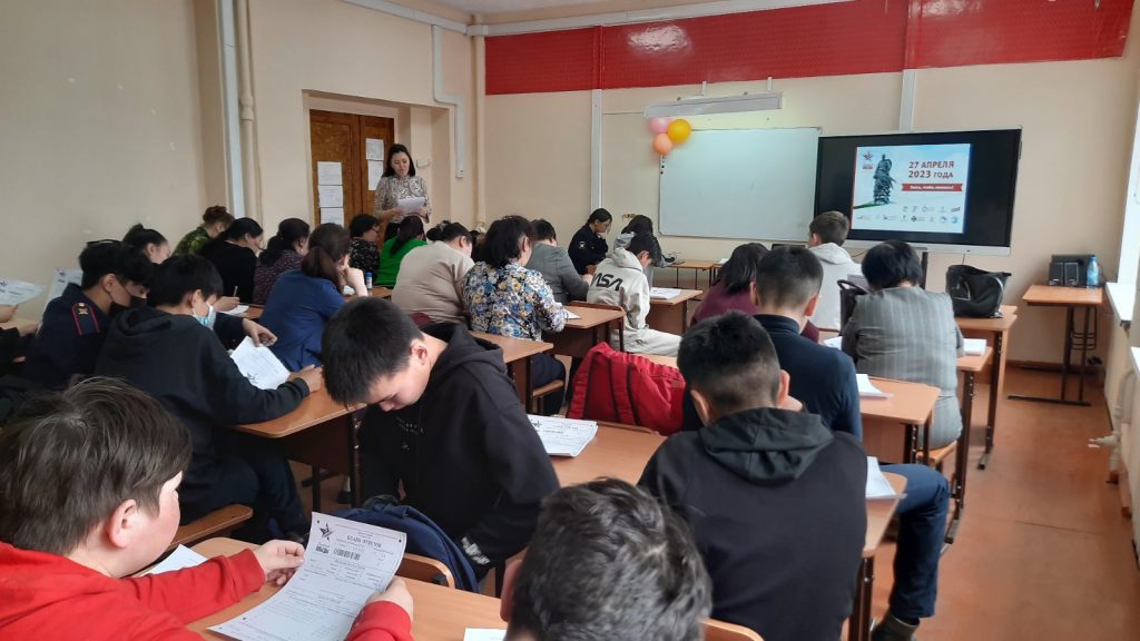 27 апреля в школе учителя и учащиеся писали Диктант Победы 2023. Данная акция в рамках празднования Дня Победы является одним из важных мероприятий. Диктант посвящен не только проверке уровня знаний военной истории нашей страны. Главная цель акции – объединение всех граждан России. Наше благополучие во многом зависит от того, насколько мы едины, уважаем ли свои исторические корни и доверяем ли друг другу. Данный диктант в школе провели Ульяна Хувен-ооловна Монгуш — организатор площадки по школе; Аржана Алексеевна Дондай — ответственная за проведение Диктанта; Темир Владимирович Кунзен-оол — технический специалист.