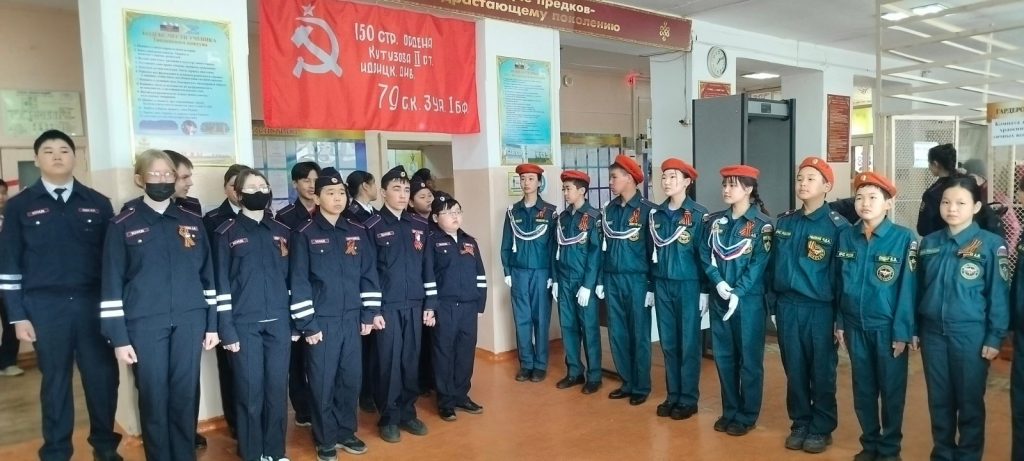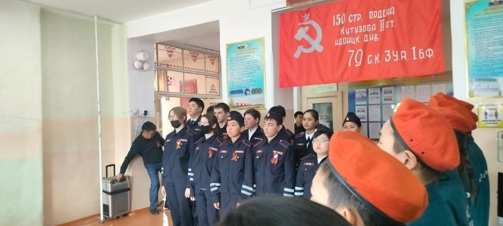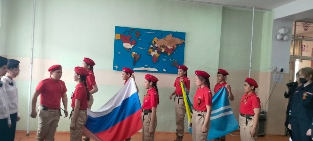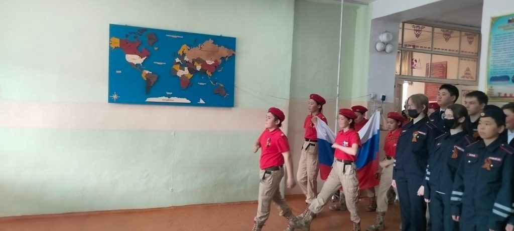 В школе 4 мая прошла церемония поднятия Государственных флагов России и Республики Тыва, Знамени Победы. Задача мероприятия: способствовать пониманию значения государственной символики России и Республики Тыва (Знамя Победы, георгиевская ленточка), научить проявлять к ним уважение.Знамя Победы признано официальным символом Победы советского народа и его вооруженных сил над фашистской Германией в Великой Отечественной войне. Знаменем Победы является штурмовой флаг 150-ой ордена Кутузова 2 степени Идрицкой стрелковой дивизии, водруженный 1 мая 1945 года на здании рейхстага в городе Берлине.