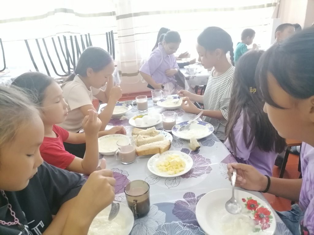 Наш второй день открытия лагеря прошёл под девизом «Быстрее, выше, сильнее». С утра дети с большим нетерпением ждали утреннюю зарядку. После зарядки на свежем воздухе прошла линейка с поднятием флага и разучиванием гимна Российской Федерации и Республики Тыва, а дальше детей ожидал вкусный завтрак от наших поваров. На тематическом занятии наши дети познакомились с историей олимпийских игр. И завершающий этап после вкусного обеда прошла спортивные игры.