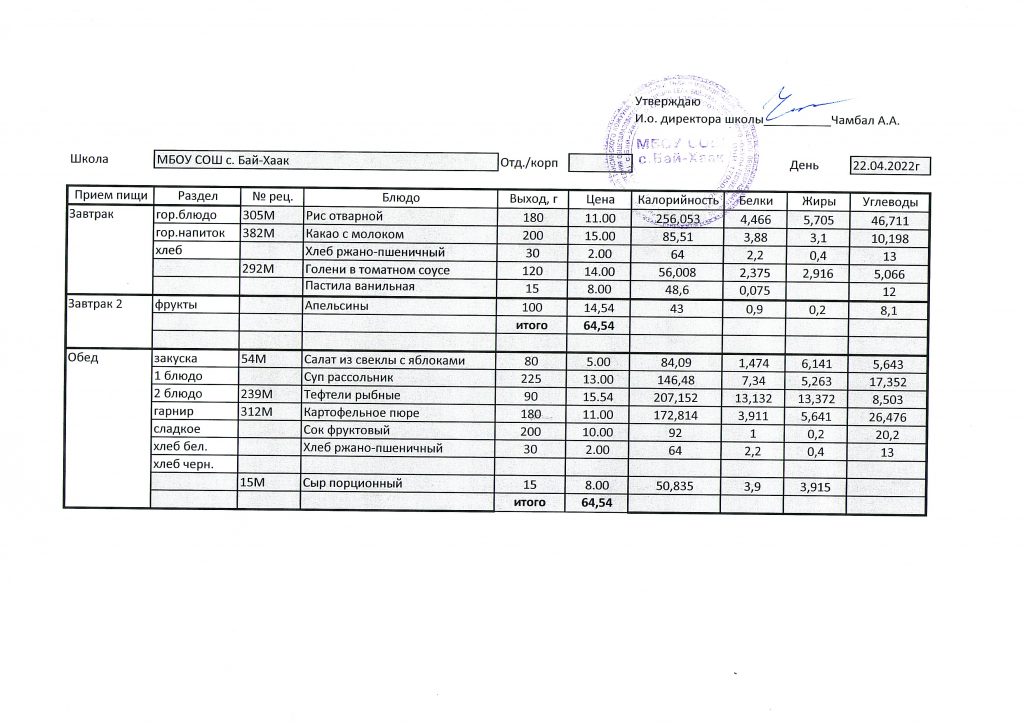 Меню на 22.04.2022 г.