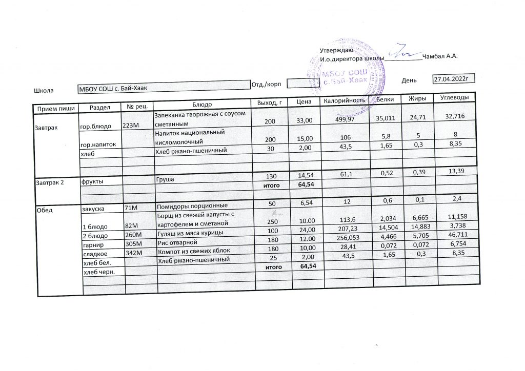 Меню на 27.04.2022 г.