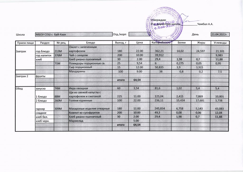 Меню на 21.04.2022 г.