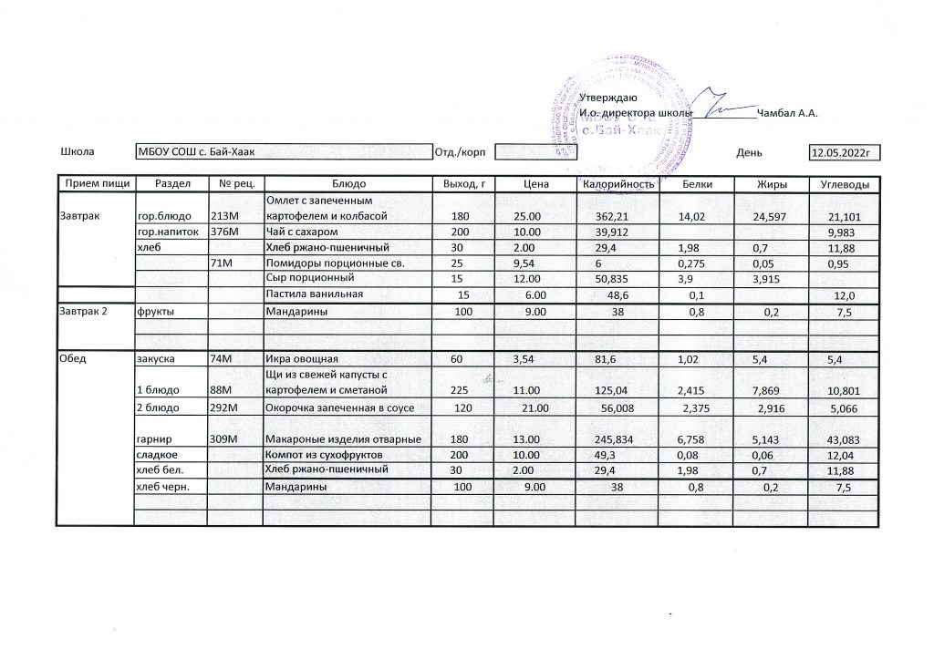 Меню на 12.05.2022 г.