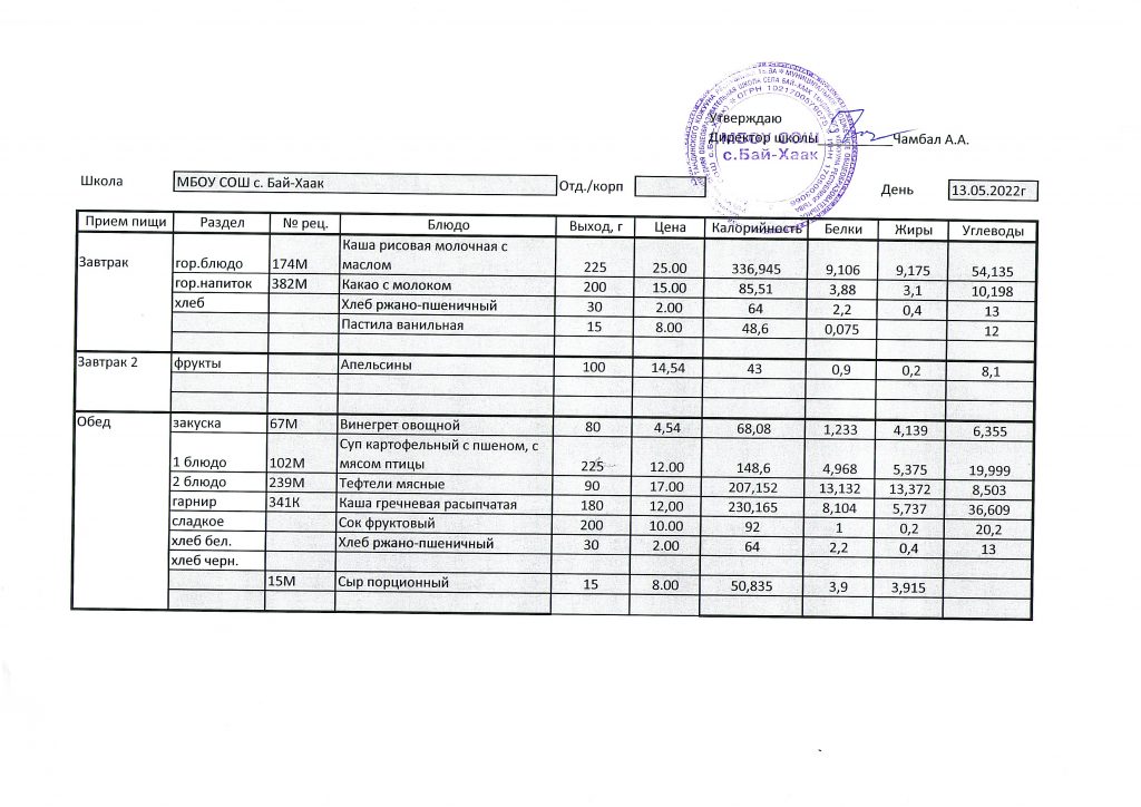 Меню на 13.05.2022 г.
