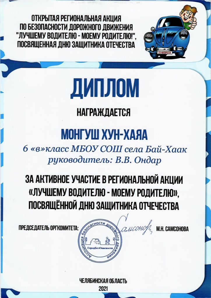 Видеоматериал к конкурсу «Лучший педагог по обучению основам безопасного поведения на дорогах». Руководитель отряда ЮИД Ондар В.В.