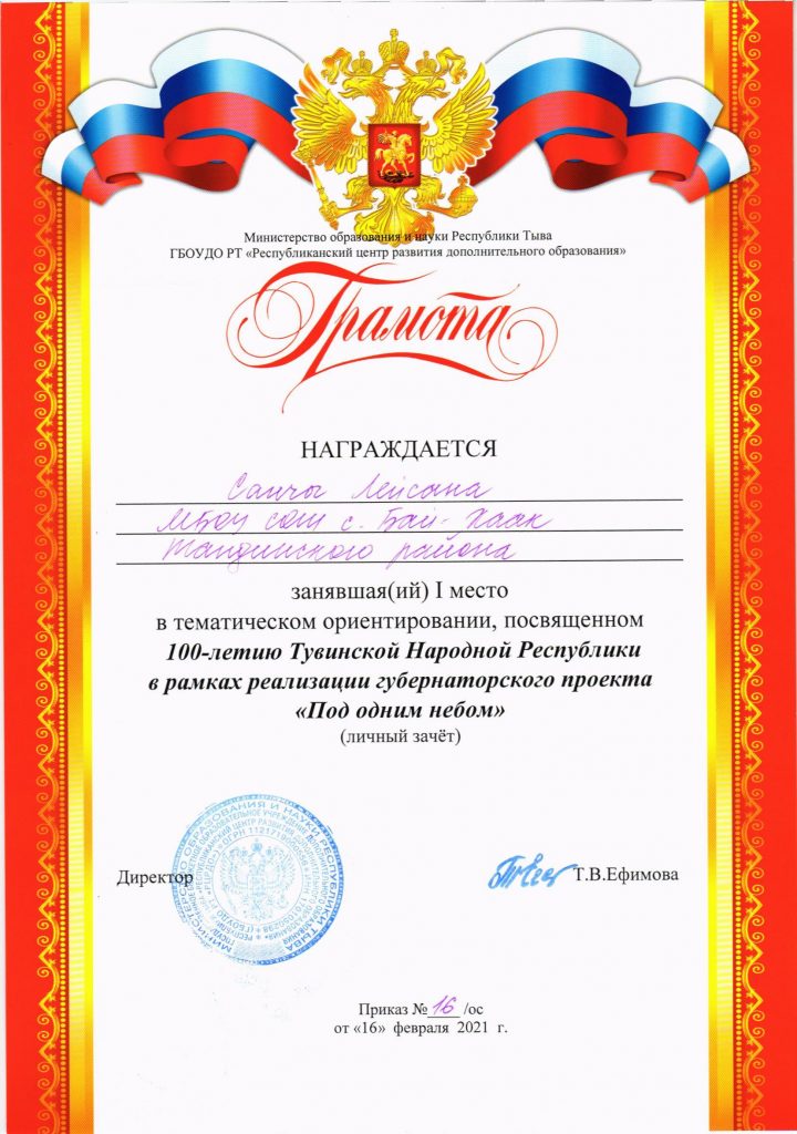 Арапчор Аянмаа Николаевна