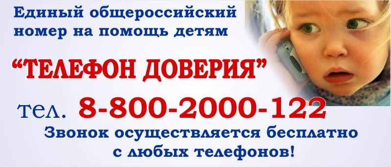 Единый общероссийский номер на помощь детям 8-800-2000-122 (Звонок осуществляется бесплатно с любых телефонов)